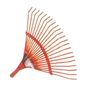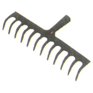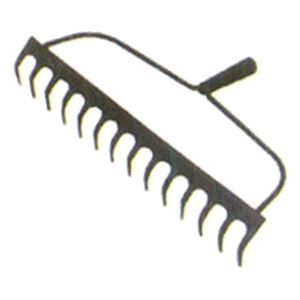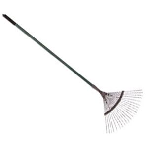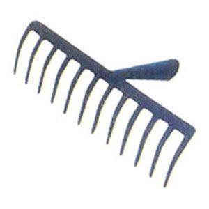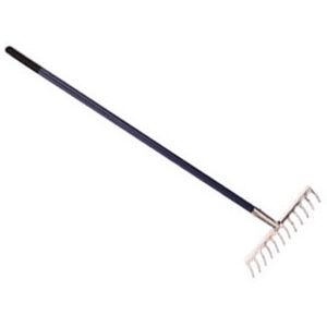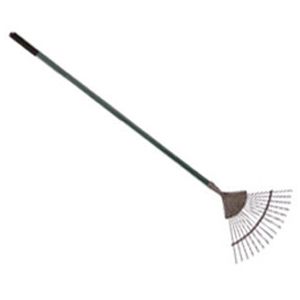 16 Flexible round Steel Tines with Epoxy coated Head, securely fixed to tubular Steel Handle with Black Plastic Hand Grip with hang hole.